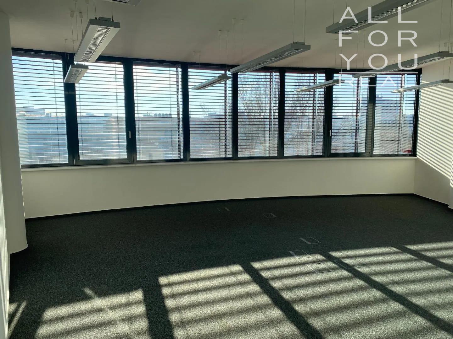 Efektívny kruhový pôdorys budovy s prirodzeným presvetlením- obrovskou výhodou je- každá kancelária má zabezpečený väčší prístup k dennému svetlu s menším počtom prenajatých m2