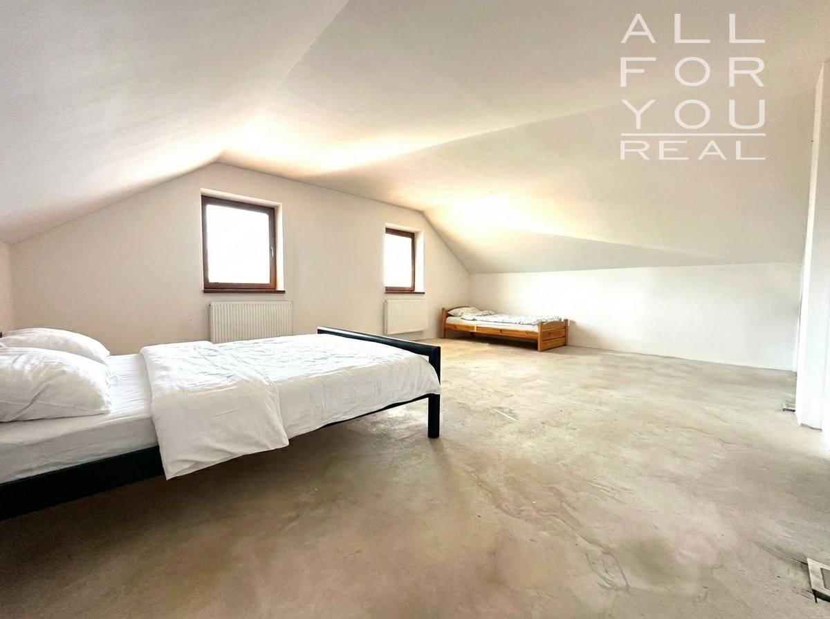 Spálňa na poschodí sa dá v prípade potreby predeliť jednou stenou na dve rovnocenné izby - predpríprava s kúrením, prieduchmi a s elektrikou (vypínače, zástrčky)